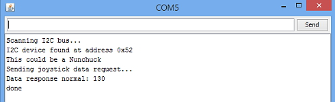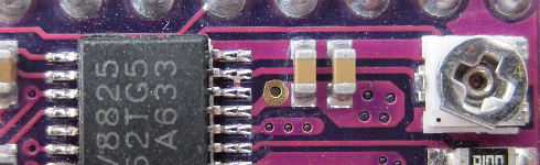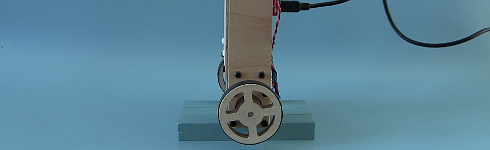 The orientation of the gyro is important. Make sure to mount the gyro in the exact same orientation as shown on this picture. Otherwise the YABR software cannot calculate the correct angle and the robot will not work. ![]() 4.3 Hardware testPlease note that you are soldering the wires on the back side of the PCB. The schematic is drawn facing the components from the front. So everything is mirrored and you need to double check all the connections before you connect any power to the PCB. With everything in place it's time to connect the FTDI programmer to the Arduino pro mini. Don't connect the battery yet. If the LED's don't lit up there is a short circuit in the wiring and you need to disconnect the FTDI programmer as soon as possible. Normally the Arduino pro mini is already programmed with the blink sketch so the LED on the Arduino should start to flash. To check if the gyro is connected correctly and to check the balancing point of the robot you need to upload the "hardware-check" program that you can find in the software package that you downloaded earlier. ![]() Test the balancing angle of the robot and fix it in that position on a stand as I showed in the video. Upload the "hardware-check" program, open the serial monitor and set the baud rate to 9600. After uploading the program, open the serial monitor and set the baud rate to 9600. The program will check if there is any I2C device is connected and if this is a MPU-6050. If everything is working as expected the program will output several raw gyro values on the screen. These are just examples and your values may be different. Note down the balance value that you see in the serial output. You will need it later in the main program. ![]() 4.4 Limit the motor currentNext thing on the to do list is to set the stepper controllers to the correct drive current. If the motor current is set to high the stepper controllers will heat up and they might get damaged. First set the potentiometer at the same position as shown in the picture below. Now always be careful when connecting the lipo battery for the first time. A short circuit can cause high currents, heat, sparks, and burns. A good alternative is to use a small DC fuse like the one below. This fuse will blow if the wiring on the back side of the pcb holds a short circuit. ![]() The easiest and safest way to set the correct current and to check if the wiring is correctly connected is by measuring the current in the power supply wires with a bench power supply. The power supply is limited to 500milli amps. This is an extra safety feature. If there is a short circuit the power supply will limit the current to 500 milli amps and the wiring will be fine. First connect one motor. With the potentiometer it's possible to set the current between 100 and 150mA. This is more than enough to get good performance. Do the same with the other stepper controller. If you don't have the possibility to measure the current just set the potentiometer in this position and feel if the stepper driver doesn't get to hot. But it's always best to measure the current. ![]() 3.5 The remote controlIf you open the Nunchuck you can note the wire colors that are connected to the various pins as you can see on the schematic. The Nunchuck works on 3.3V and you can use the 3.3V output of the Arduino Uno to power the Nunchuck. The 5V output can be used for the transceiver. Again, connect the wires as shown on the schematic to get it to work. To check if the Nunchuck is connected correctly you need to upload the "hardware-check" program that you can find in the software package that you downloaded earlier. After uploading the program, open the serial monitor and set the baud rate to 9600. The program will check if there is any I2C device is connected and if this is a Nunchuck. If everything is working as expected the program will output several raw joystick values on the screen. ![]() Step 5 - Upload the softwareAnd finally you can upload the YABR-remote program to the Arduino Uno and the YABR-robot program to the Arduino pro mini. The YABR-remote program does not need any modification. In the robot program you need to change the accelerometer calibration value to the value that was shown by the hardware test program when the robot was in it's balancing position. To start the robot you need to power up the remote. Lay the robot on it's back and switch on the power. The LED will blink indicating that the gyro is calibrating. When the blinking stops you can slowly lift the robot and it will automatically start to balance itself. And basically that's it. You can now control the robot with the Nunchuck. ![]()